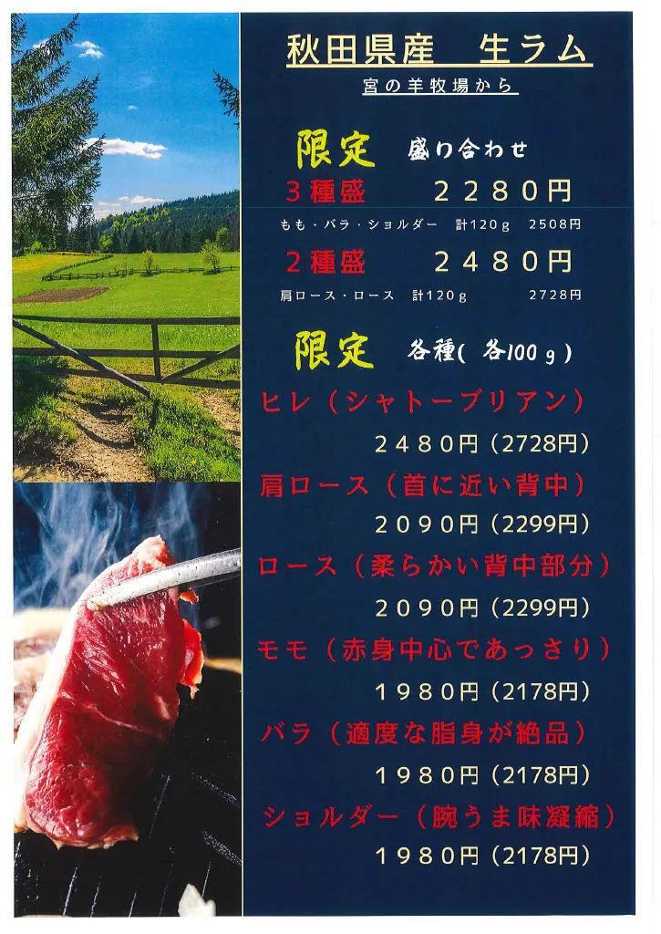 【8/31~】秋田県産 生ラムが入荷いたしました!
